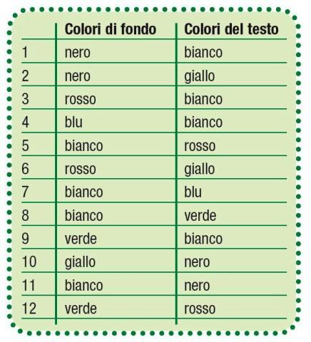 La valutazione del colore, il contrasto (l’abbinamento fra due o più colori) e l’intensità (la massima intensità l’abbiamo con i colori puri) sono aspetti da valutare con estrema attenzione, sono un momento progettuale rilevante. Questo perché la leggibilità è un aspetto fondamentale della comunicazione. Troviamo le regole per definire un format corretto, in cui i colori di fondo e quelli del messaggio offrano la massima leggibilità.