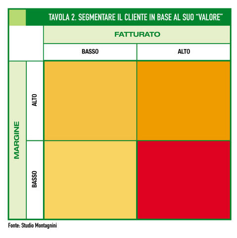 Che cose ne facciamo di un cliente cha genera un basso fatturato su categorie merceologiche dal margine irrisorio? Che ruolo potrebbe avere nella strategia e nella crescita? È il caso di investirci sopra? Lo fidelizziamo?