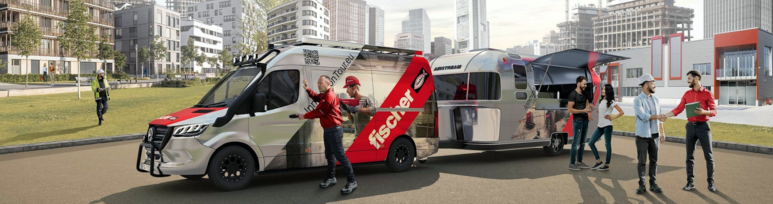 La possibilità di conoscere i nuovi prodotti e testare le soluzioni fischer con il supporto dei tecnici ed esperti fischer, si unirà alla convivialità e al buon cibo. Il Van attrezzato, vera area formativa su ruote, viaggia infatti con l’Airstream personalizzato fischer, la cucina viaggiante per preparare al momento panini e piatti caldi!