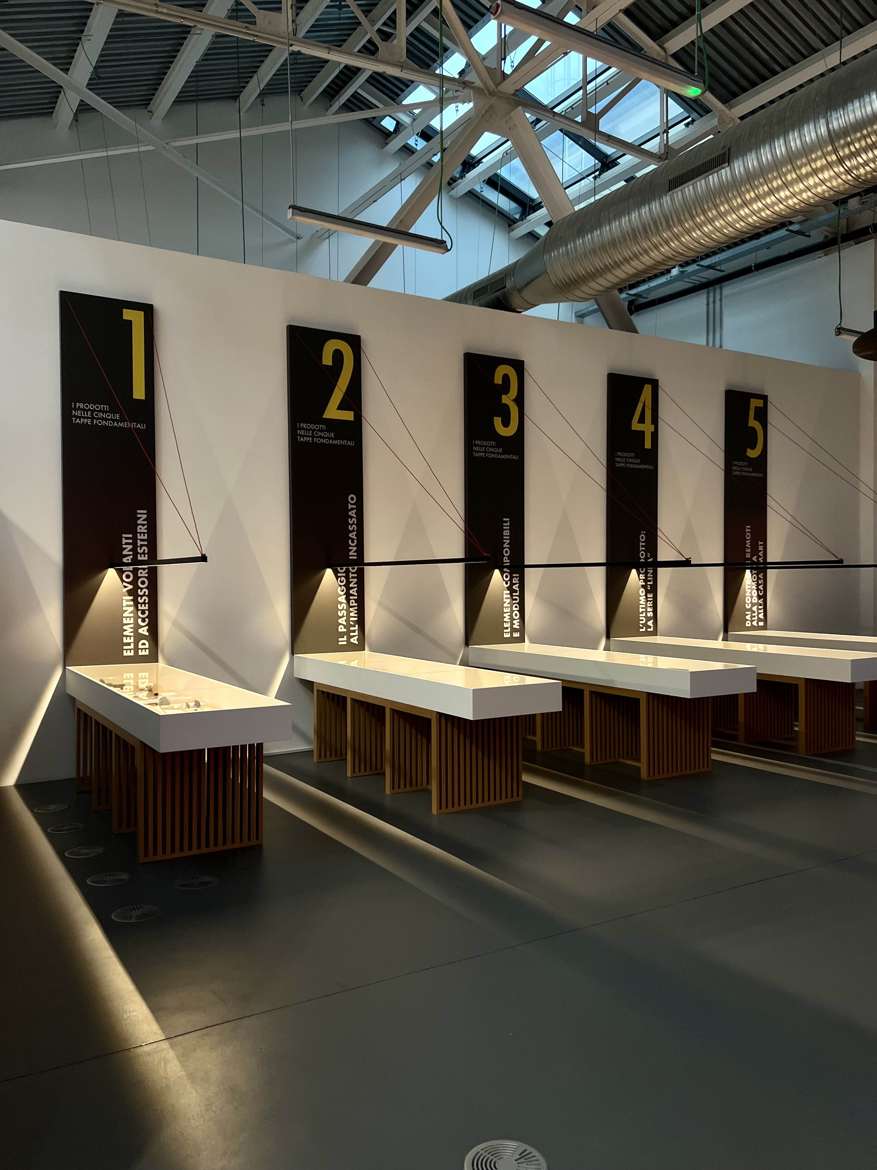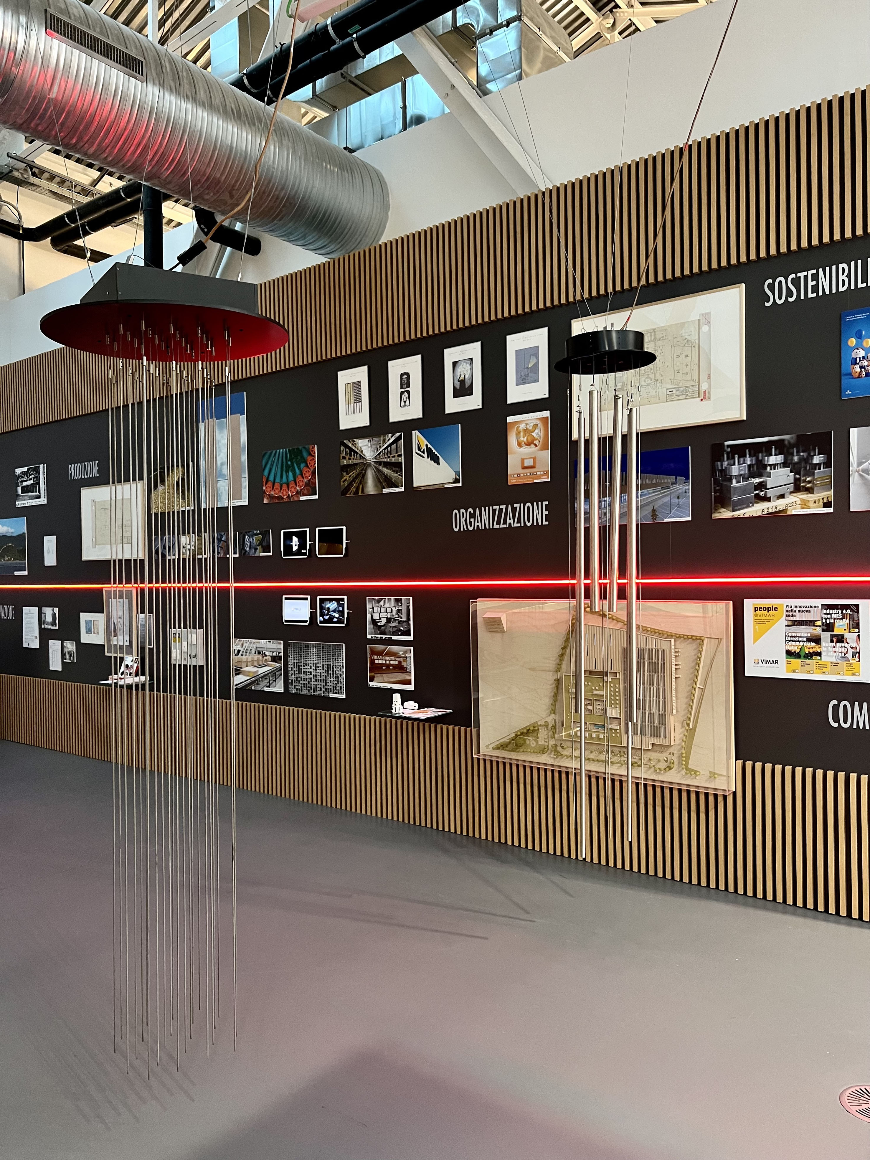 Ma in parallelo si disegna nel percorso della mostra anche l’evoluzione di una cultura industriale che rappresenta una serie di valori tutt’altro che slegati dal successo dei prodotti: il coraggio di rischiare capitale, tempo e lavoro nell’innovazione, il radicamento nel luogo di produzione, l’attenzione all’evoluzione della cultura della casa, la tecnologia e la responsabilità sociale.