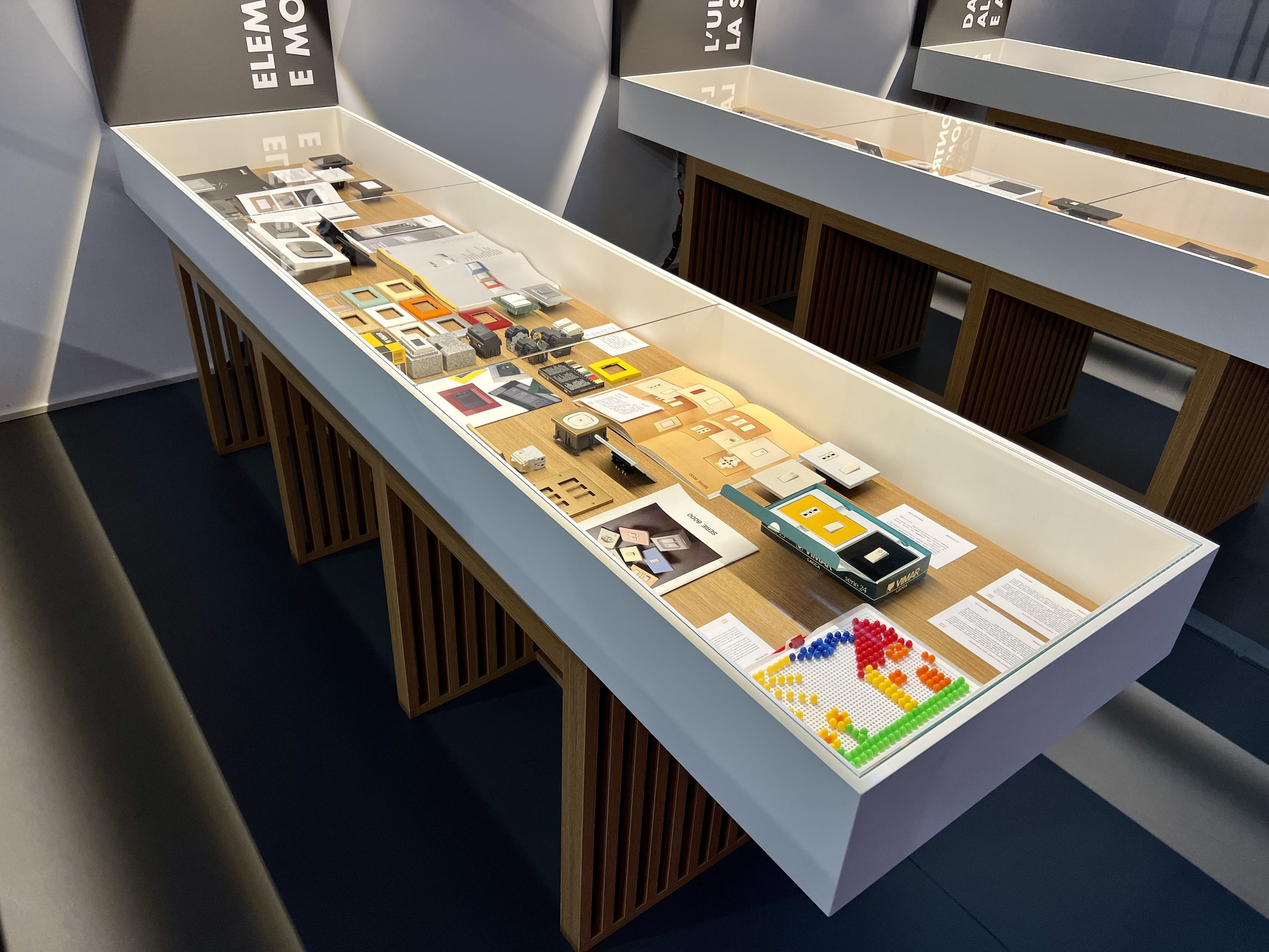 In mostra gli oggetti dell’elettricità di quasi ottant’anni di storia dell’azienda e della casa, dagli accessori volanti ai portalampada, agli elementi pensati per gli impianti integrati nei muri; la componibilità e la modularità degli oggetti elettrici, dai telai alle cornici, ai comandi integrati, fino alla casa domotica.