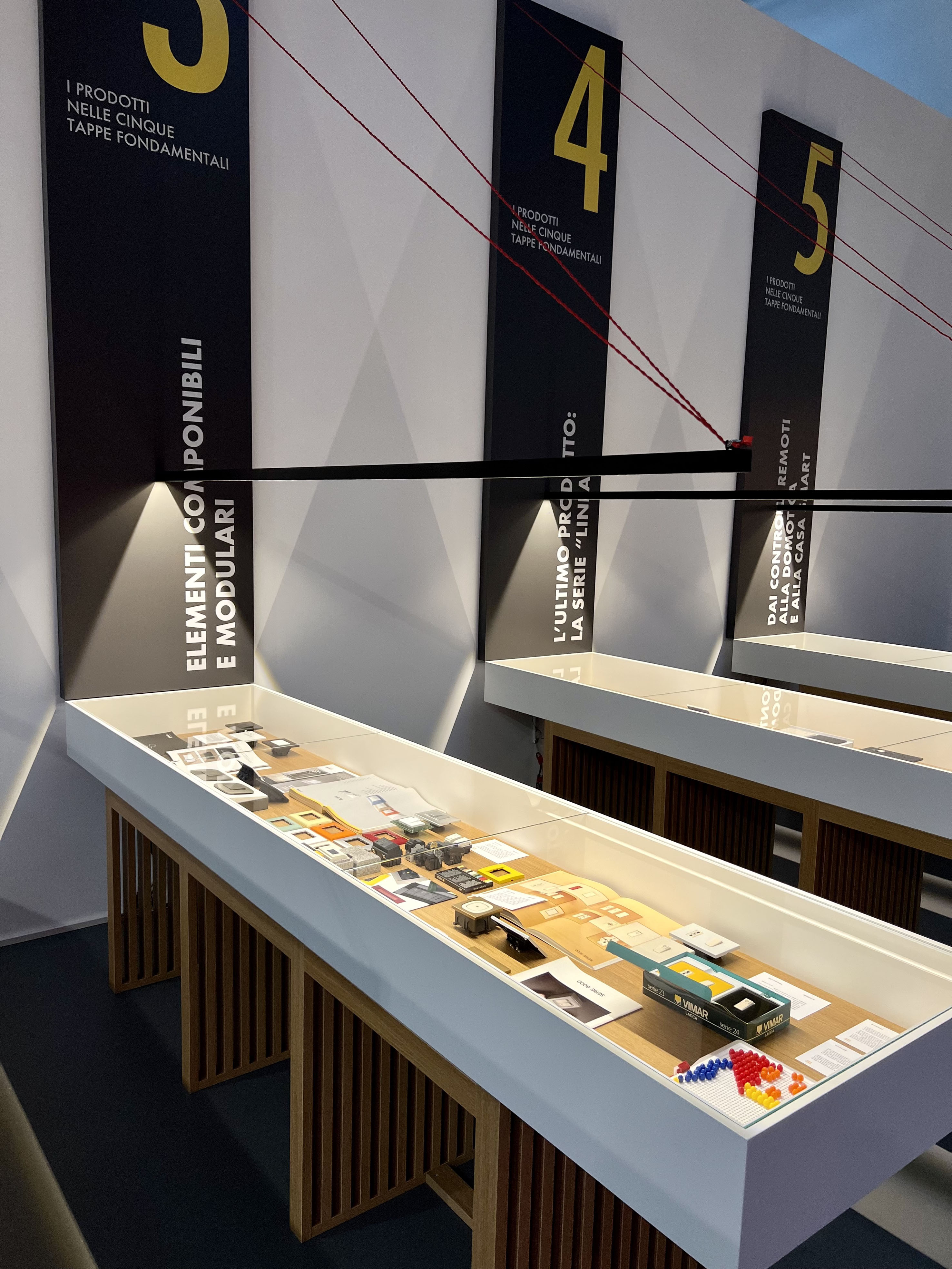 In cinque sezioni l’evoluzione dei prodotti, dei servizi e della struttura dell’azienda viene riletta in funzione della cultura dell’abitare e delle sue trasformazioni: dalla semplice fornitura di servizi nuovi ad abitazioni già esistenti fino all’integrazione dei servizi elettrici nel corpo stesso della casa: una componente oggi imprescindibile del progetto d’architettura.