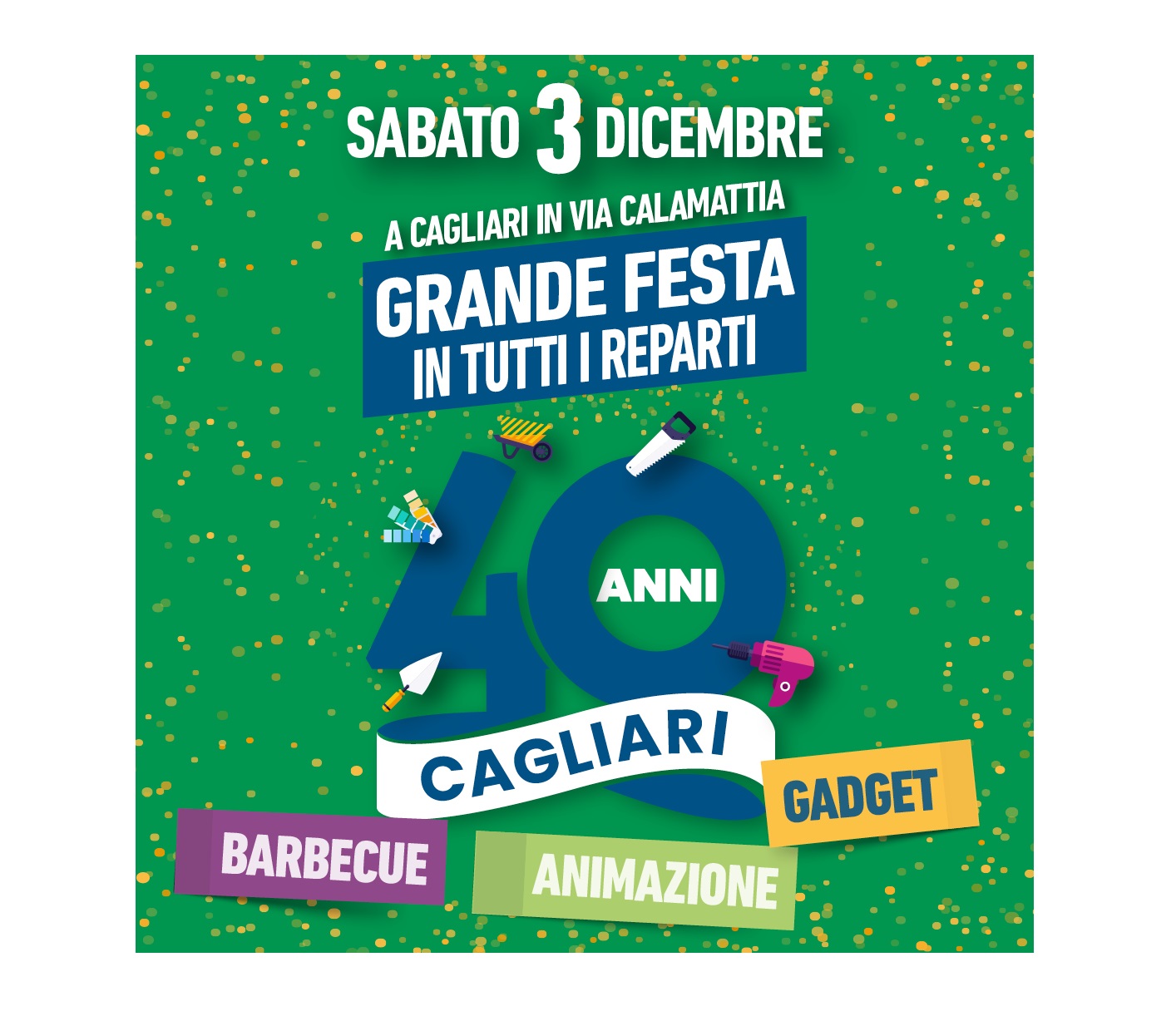 Il punto vendita di Cagliari è il fiore all’occhiello della catena CFadda Fai da Te ormai presente in tutta la Sardegna con oltre 10 negozi e il suo 40° compleanno verrà festeggiato alla presenza di clienti, collaboratori e fornitori che hanno fatto e fanno parte della storia della CFadda.