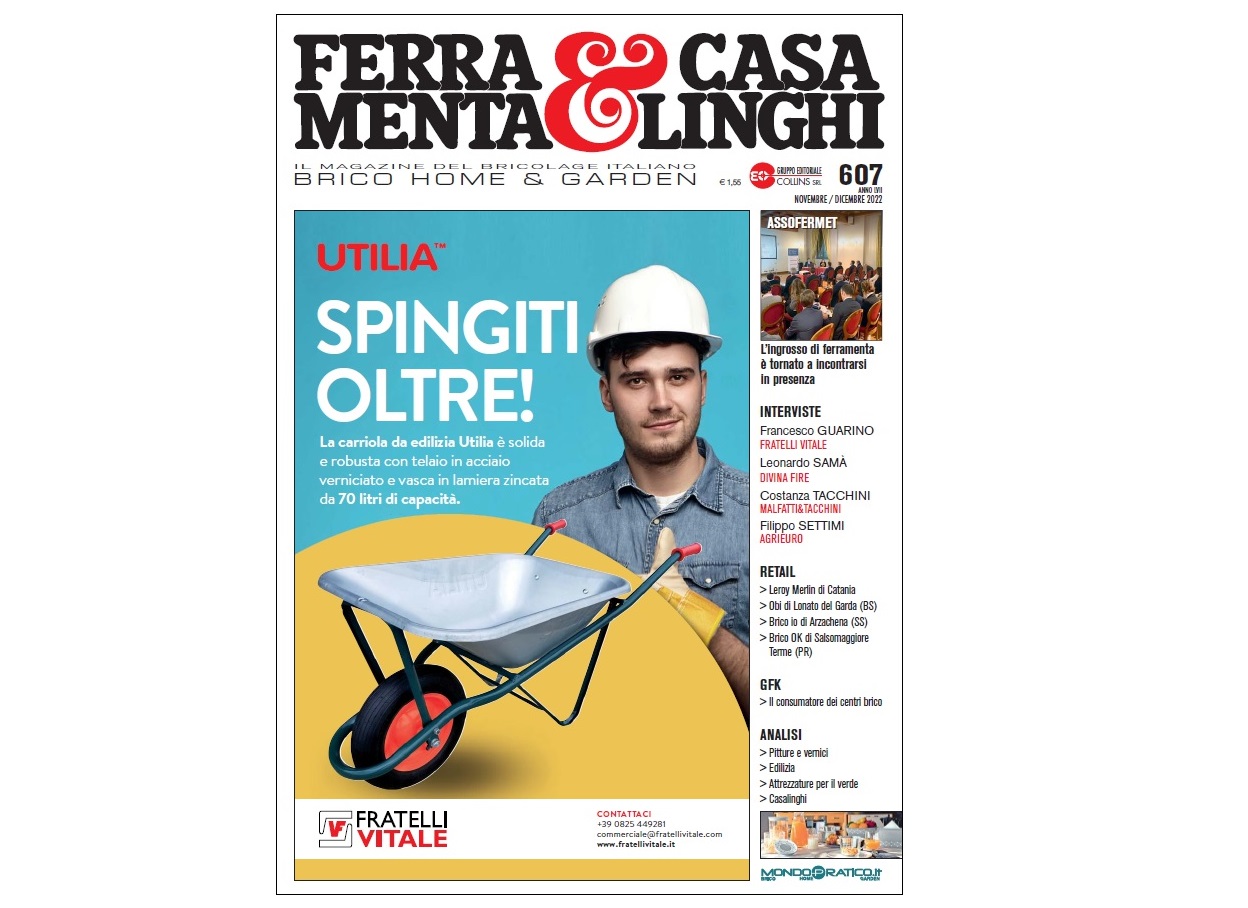 E' disponibile il numero di novembre/dicembre del nostro magazine Ferramenta&Casalinghi: tra i servizi presenti, il resoconto dell'evento (organizzato da Assofermet e dal nostro Gruppo Editoriale Collins) che ha visto protagonista, a Milano, il comparto della distribuzione tradizionale di ferramenta.