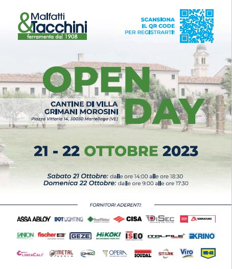 E' previsto per il weekend del 21-22 ottobre a Martellago, in provincia di Venezia, presso le Cantine di Villa Grimani Morosini, il secondo openday autunnale di Malfatti&Tacchini, grossista milanese specialista in sicurezza.