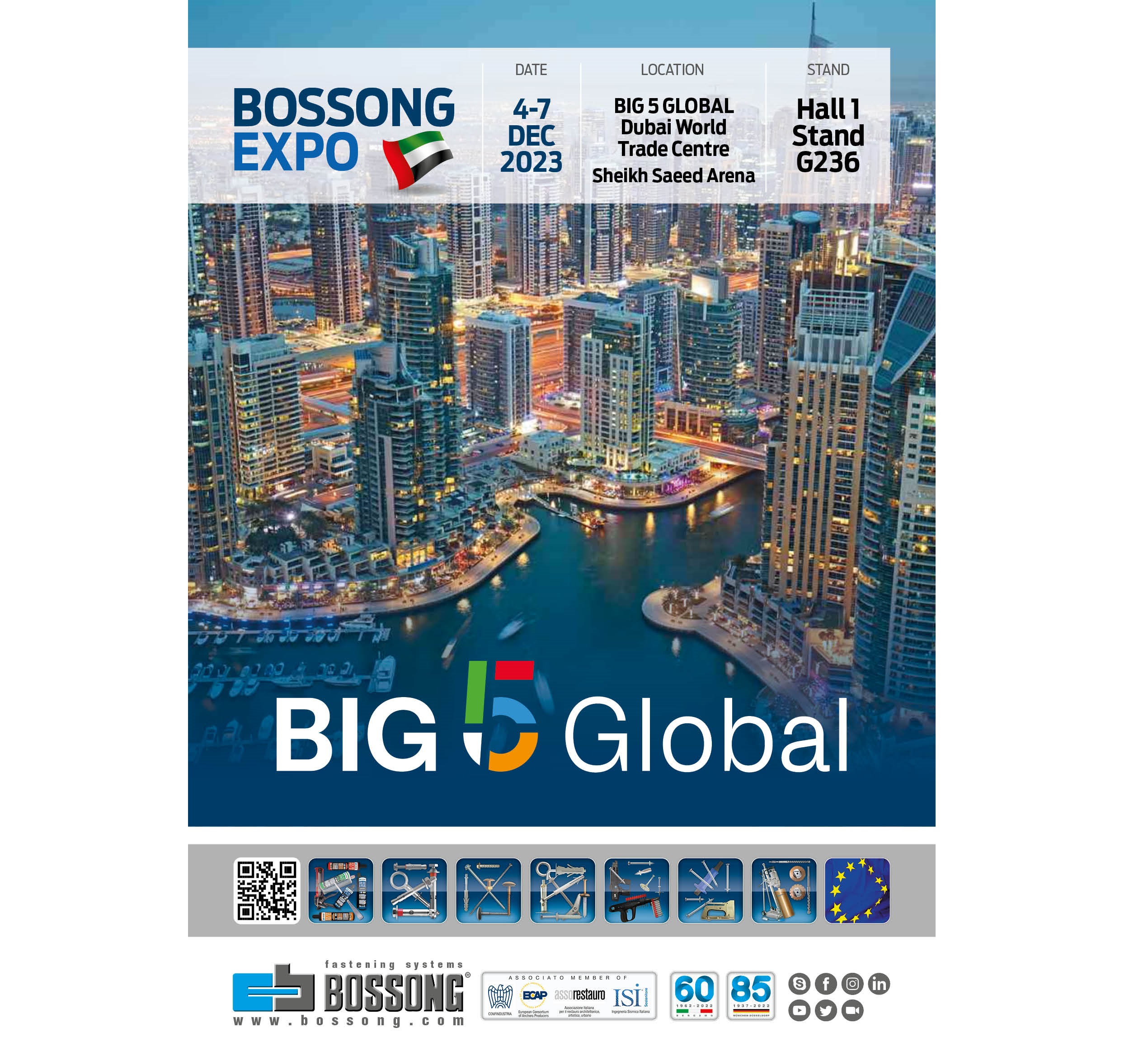 Bossong, specialista in fissaggio, parteciperà dal 4 al 7 dicembre a Big 5 Global di Dubai, la più importante manifestazione fieristica dedicata al mondo dell'edilizia e delle costruzioni di tutto il Medio Oriente.