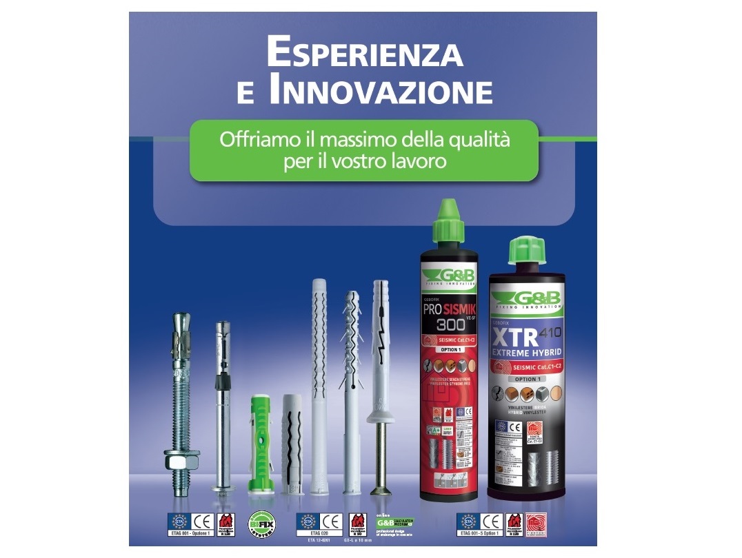L'azienda produttrice italiana G&B FISSAGGI da oltre 40 anni propone al mercato nazionale e internazionale sistemi di fissaggio in nylon, acciaio e ancoranti chimici, sigillanti, schiume poliuretaniche, fissaggi speciali per edilizia e molto altro per una vasta gamma di applicazioni nei settori ferramenta, utensileria, edilizia, industria, idro-termo sanitario ed elettrico.