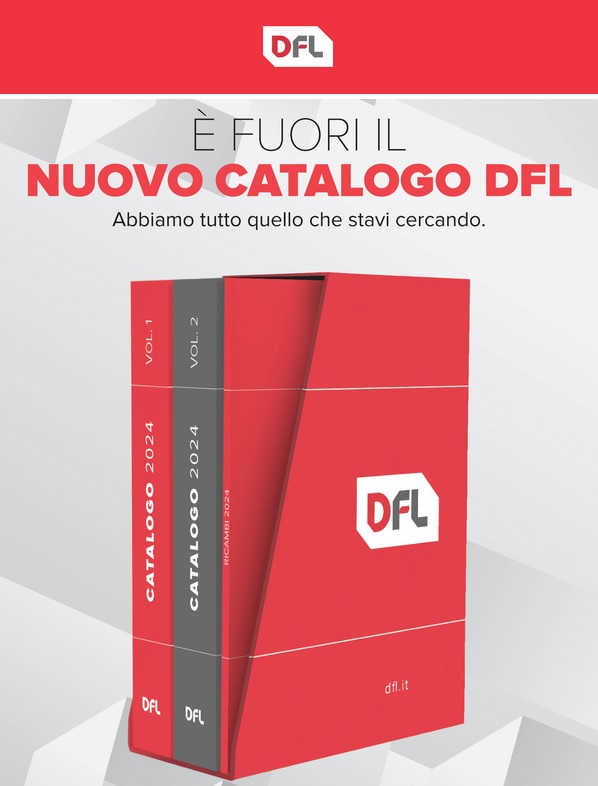 Il catalogo DFL 2024 è suddiviso in 3 tomi, raccolti in un contenitore pratico ed elegante caratterizzato dal tipico colore rosso DFL.