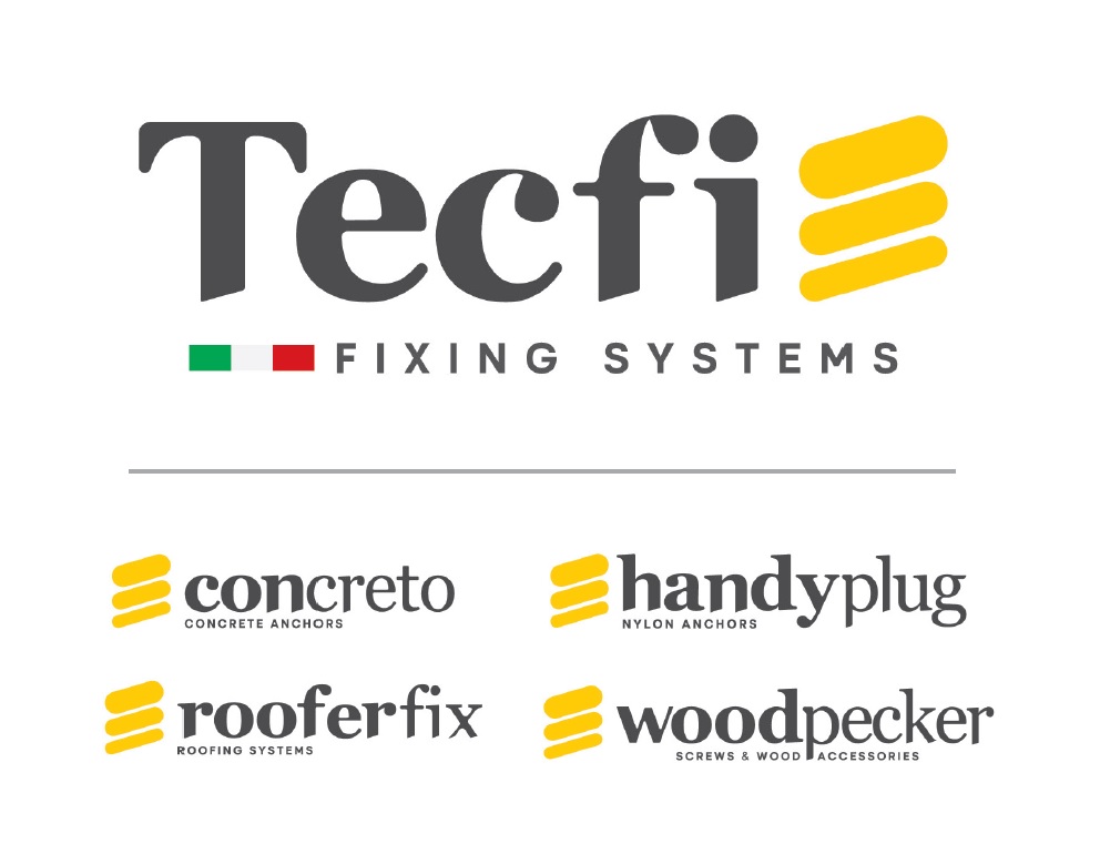 Inoltre, nell’ambito del progetto legato al cambiamento della veste grafica, l’azienda Tecfi ha sviluppato anche quattro marchi rappresentativi delle principali linee prodotto presenti a catalogo: “Ancoranti per il calcestruzzo”; “Tasselli in nylon”; “Sistemi di fissaggio per coperture”; “Vite ed accessori per il legno”. La grafica dei nuovi “loghi prodotto” ha un forte legame (“family feeling”) in termini di riconoscibilità con il nuovo marchio aziendale.