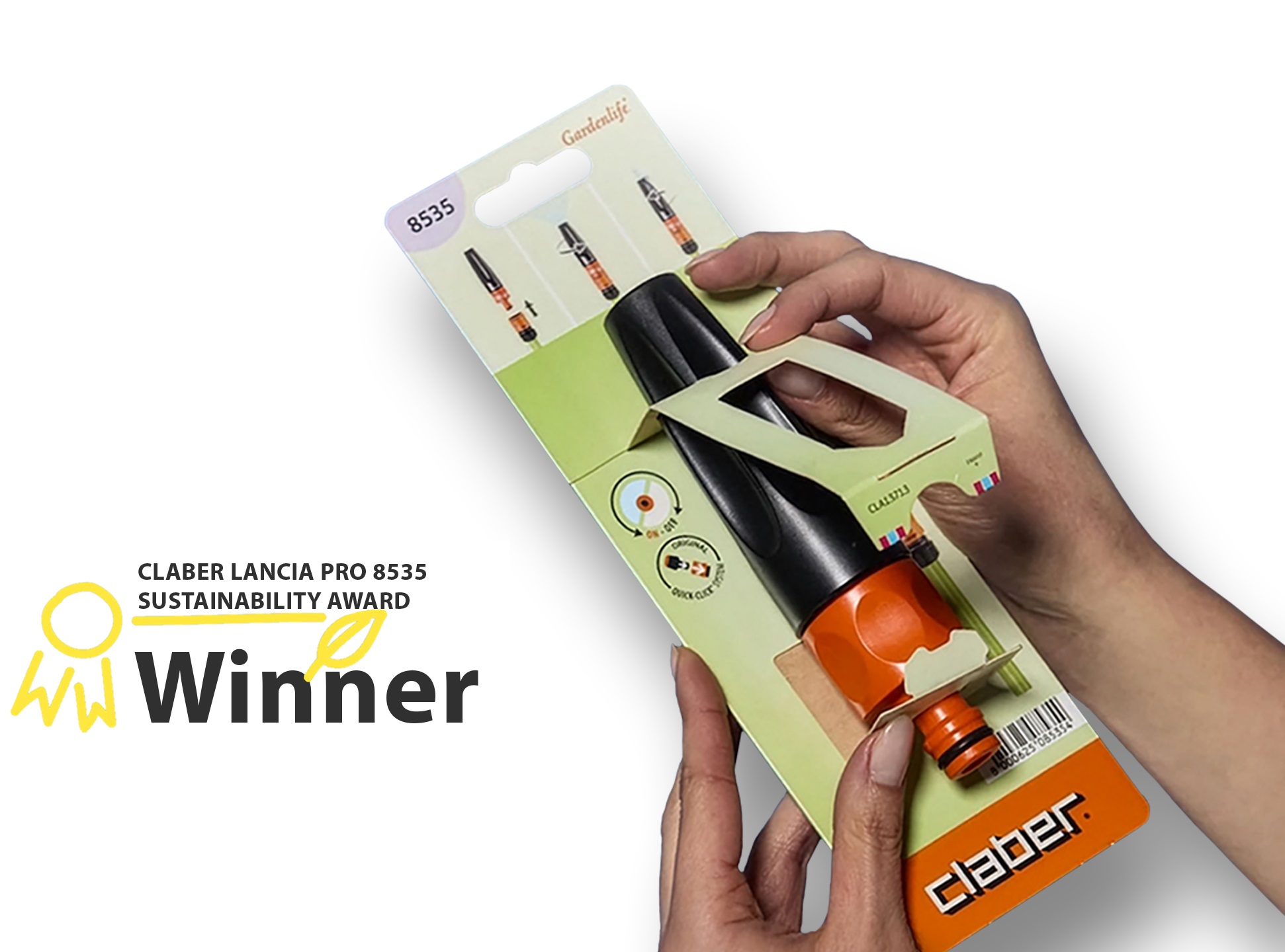 Il nuovo packaging della pistola a spruzzo Claber Lancia Pro 8535, sviluppato da Lucaprint con cartoncino Stora Enso, ha ottenuto il Premio Speciale per la Sostenibilità agli European Carton Excellence Award 2025.