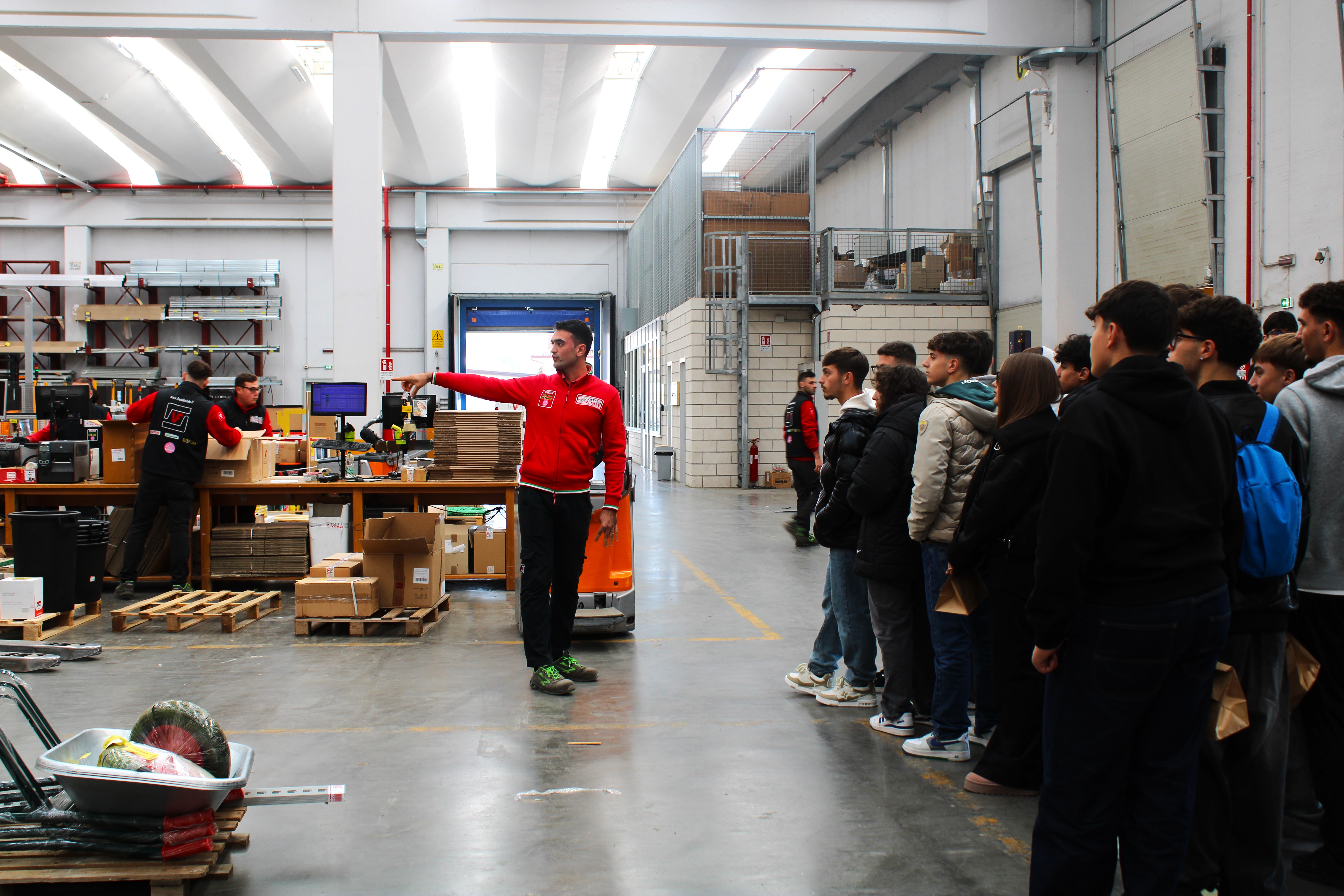 La visita alla logistica ha rappresentato uno dei momenti salienti. Gli studenti hanno potuto osservare l'intero ciclo di vita della merce: l'arrivo, lo smistamento, la preparazione e l'organizzazione finale. Hanno così scoperto un mondo dinamico, basato sulla precisione, sull'attenzione e sul costante lavoro di squadra, reso possibile grazie a sistemi informatici avanzati e a un coordinamento meticoloso.