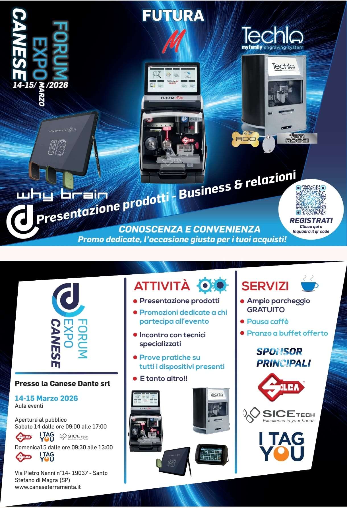 - MY FAMILY: programma di incisione macchine + targhette I TAG YOU + promo esclusive. Tecnici presenti per prove pratiche.