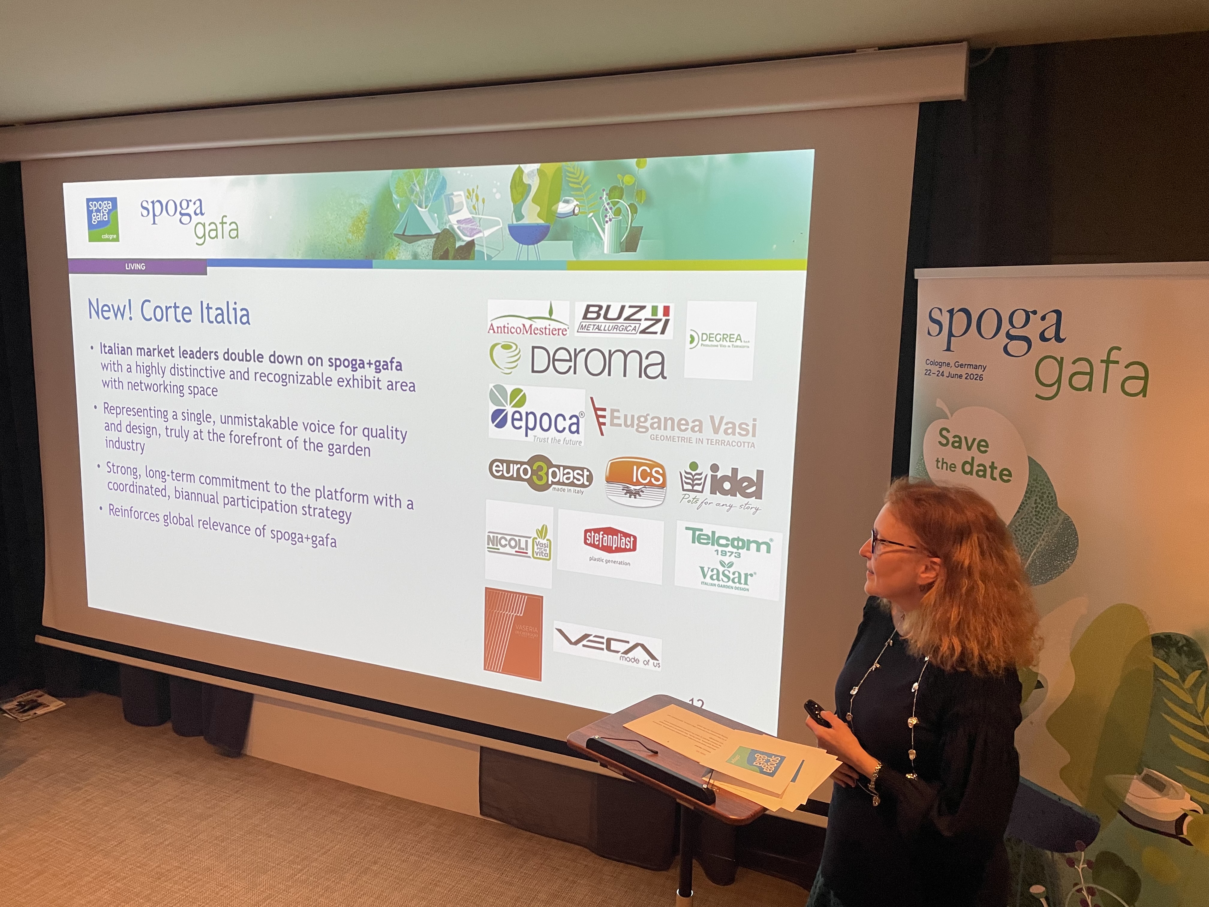La presentazione della fiera è stata affidata a Claudia Maurer, Direttore Generale di Spoga+Gafa, la quale ha raccontato alla platea le novità dell'edizione 2026. A fare gli onori di casa, Thomas Rosolia, AD Koelnmesse Italia.