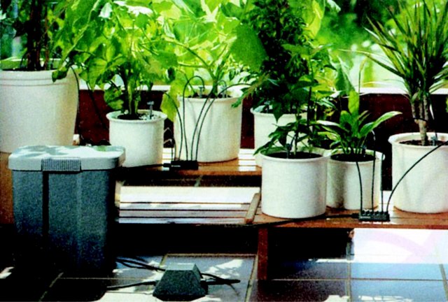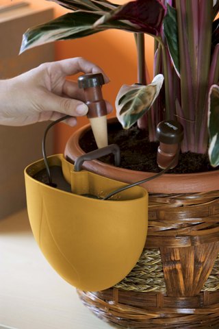 Gardena ha studiato un “set vacanze” per innaffiare in modo automatico fino a 36 vasi. É disponibile anche nella versione con contenitore per l’acqua da 9 litri.