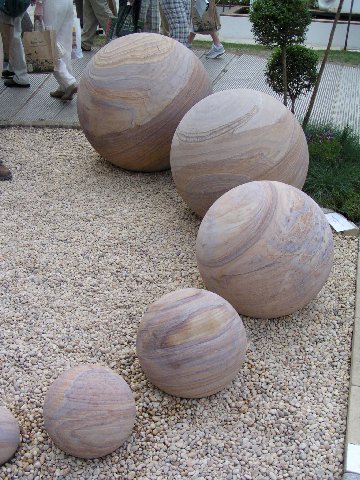 La più grande delle sfere in arenaria, da Silverland Stone, pesa 4,5 tonnellate. Il materiale e la lavorazione provengono dal Ragistan, in India. Le sfere di arenaria colorata immagazzinano ed emettono anche calore solare. Le sfere in arenaria si trovano comunemente nei templi buddisti e indù. Ora che l’India ha più turismo, questi oggetti sono richiesti per alberghi e altri edifici di prestigio ([eurl]www.silverlandstone.co.uk[=url] www.silverlandstone.co.uk[/url]).