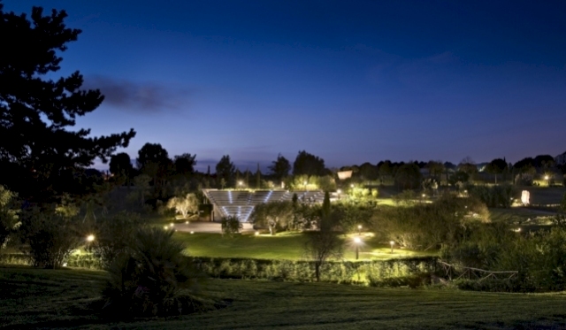 Gli apparecchi forniti da Ghidini sono vari e ogni modello è stato scelto in base al tipo di area da illuminare per avere il massimo effetto scenografico: incasso a suolo, bollard, proiettori suolo e proiettori. Per l’anfiteatro sono stati utilizzati 170 Microgeo Led, apparecchi ad incasso carrabile per esterno a luce radente con controcassa in alluminio per il montaggio a pavimento. Per l’illuminazione dei viali letterari e carrabili, il bollard TRET, realizzato con elementi in alluminio a basso contenuto di rame per un’elevata resistenza all’ossidazione, verniciato in polveri poliestere con trattamento anticorrosione e diffusore in policarbonato antivandalico trasparente, nelle versioni CUTOFF per i primi con paraluce e frangiluce a 45° verniciati neri 5 gloss a bassa riflettanza per rispondere alle esigenti norme regionali contro l’inquinamento luminoso e UP per i secondi con un’altezza di 2,40 metri. Per esaltare alberi e arbusti, la scelta è ricaduta sul proiettore da suolo Daytona, orientabile di 75°, girevole a 360° e controcassa in ferro con trattamento in cataforesi esclusa. Infine, per illuminare le pietre letterarie, è stato scelto il proiettore Vik, ideale per sottolineare con decisione particolari architettonici e facciate.