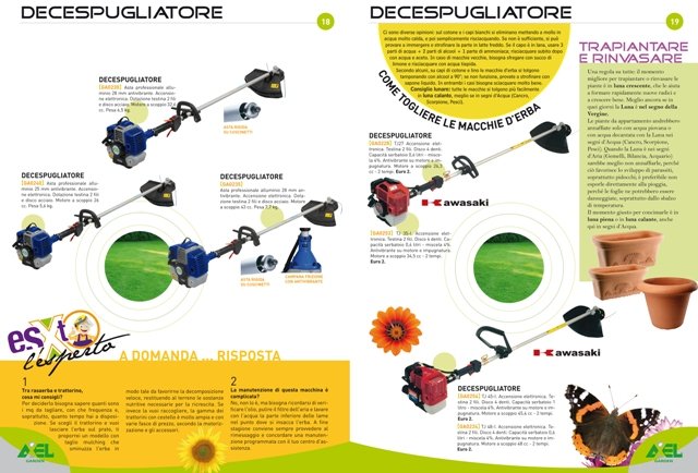 Ben curata la parte dedicata all’esperto, contenente consigli semplici ma pratici per la scelta del giusto prodotto in base alle esigenze reali, il primo intervento in caso di necessità; veramente accattivante il lunario, quando seminare potendo ricavare a centro rivista il calendario stesso da appendere, i ‘vecchi’ proverbi che non stancano mai.