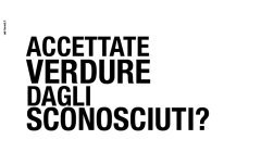 Il soggetto della campagna, firmato dall’agenzia emiliana Ad-Trend, ha un visual estremamente pulito e lineare: dal fondo bianco spicca un pomodoro confezionato come una caramella, accompagnato dalla grande headline che recita “Accettate verdure dagli sconosciuti?”.