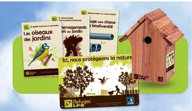 - un kit di benvenuto contenente una cassetta/nido, tre miniguide (una per il riconoscimento degli uccelli, una sulle bellezze naturali in giardino e una sulle questioni regolamentari) e un pannello che permetterà di formalizzare l'istituzione del rifugio;