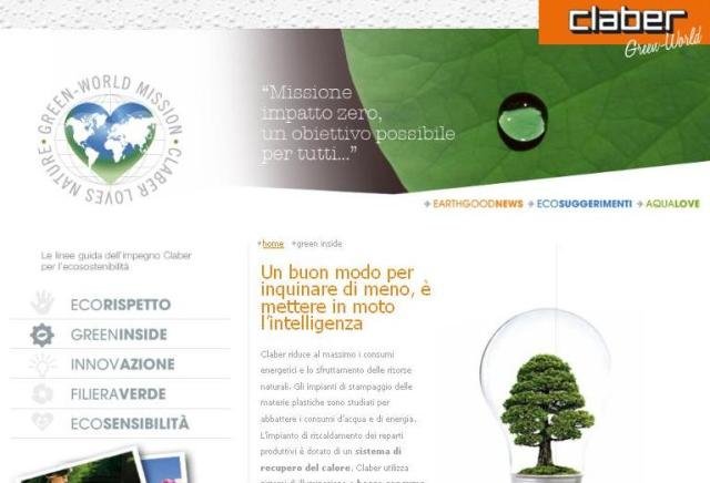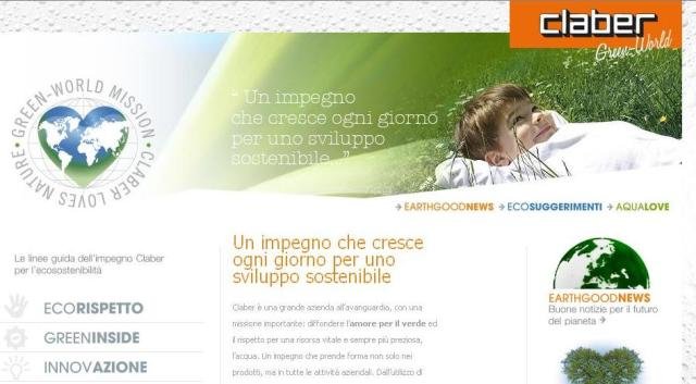 Claber, marchio italiano molto noto nel mercato dell'irrigazione domestica e professionale, ha voluto testimoniare il suo impegno verso l'ambiente realizzando il sito www.green-world.it che riassume una somma di esperienze e di iniziative che Claber ha deciso di condividere con gli operatori ed i consumatori, sintetizzandole con un unico nome: Green World.