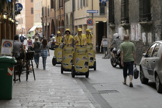 Il team si muove a bordo di segway brandizzati con una grafica accattivante e moderna, giocata sui colori e sul logo di Mercatone Uno.