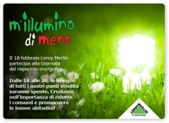 Anche Leroy Merlin aderirà all'invito di M'illumino di meno e dalle 18 alle 20 spegnerà le sue insegne.
