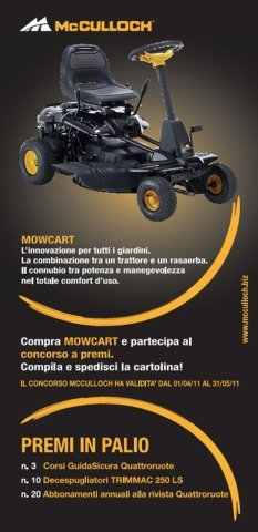 McCulloch, azienda leader specializzata in attrezzature per la cura del prato e del giardino, premia i suoi clienti con il Concorso Mowcart.