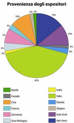 Oltre mille marchi, 636 espositori, il 58% proveniente da 37 paesi del mondo e la quasi totalità delle aziende italiane, una nuova collettiva che viene dalla Malesia e che si affianca alle rappresentative estere di Stati Uniti, Regno Unito, Canada, Cina e Brasile, oltre a espositori dalla Russia, dall’Europa del nord e dell’est, dall’Estremo Oriente e - novità assoluta quest’anno - anche dalle Barbados e dalla Corea del Sud.