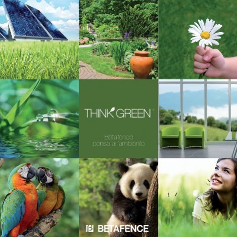 Da sempre attenta al rispetto dell’ambiente, Betafence ha messo in atto una serie di linee guida per l’utilizzo razionale delle materie prime e delle risorse energetiche. Tali imprescindibili valori vengono comunicati in “Think Green”, la nuova brochure di forte impatto emozionale, stampata su carta riciclata e con inchiostro ad acqua, distribuita a tutti clienti Betafence.
