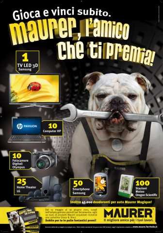 Dal 15 maggio al 30 giugno di quest’anno, la promozione “Maurer, l’amico che ti premia” è stata affiancata da un piano di comunicazione unico nel settore, che l’ha resa protagonista con oltre 16 uscite sui principali quotidiani sportivi quali la Gazzetta dello Sport, il Corriere dello Sport, TuttoSport e sulle radio private RTL 102.5 e RDS, con una programmazione radiofonica di tre settimane, per un totale di oltre 200 spot, incentivando il consumatore a recarsi presso i punti vendita. Qui, con la collaborazione dei negozianti, il consumatore ha avuto modo di partecipare alla promozione, ricevendo una cartolina “gioca e vinci” ogni 20 euro di prodotti Maurer acquistati, grazie alla quale accedeva a un montepremi d’eccezione, con circa 200 premi importanti legati al mondo dell’elettronica.
