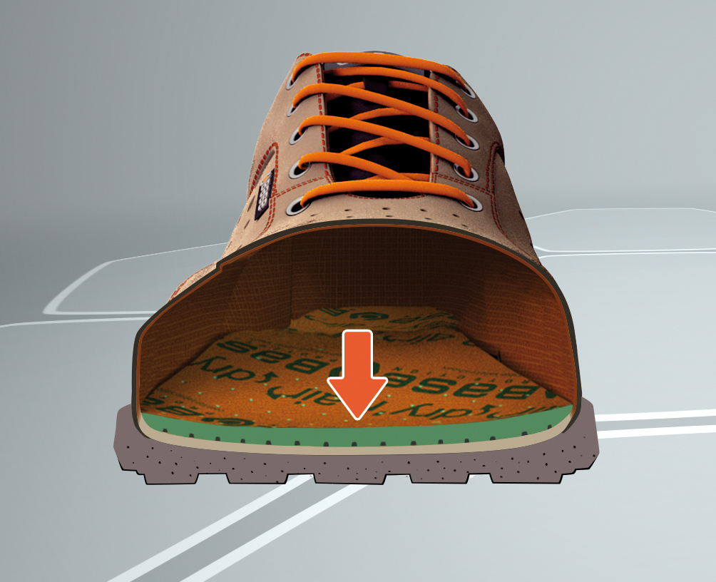 Diverse sono le tecnologie che rendono Base un’azienda innovativa e all’avanguardia: la tecnologia Tpu-Skin® riduce il battistrada della suola a vantaggio dell’intersuola, creando così una suola defaticante e dall’effetto ammortizzante; la tecnologia Dry’n air® invece è la tecnologia che mantiene il piede asciutto grazie a un sistema di fori e canali che garantisce il ricircolo dell’aria sotto al piede, che rimane così fresco e piacevolmente asciutto; la tecnologia SlimCap, infine, rende il puntale composito più leggero e sottile rispetto ai normali puntali non metallici, che rende il piede più libero, lasciandogli ampio spazio all’interno della scarpa.Il futuro è ecosostenibile