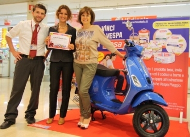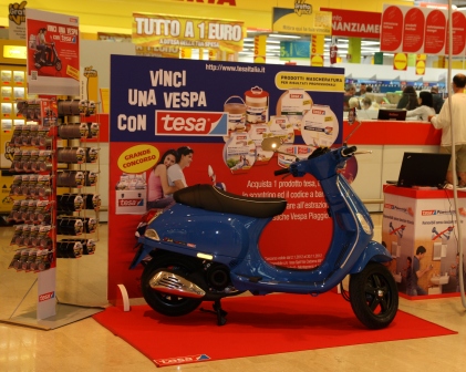 Sabato 22 settembre presso il centro commerciale di Auchan a Vimodrone si è svolta la premiazione del primo vincitore delle 3 Vespa messe in palio da tesa, azienda di primo piano nei sistemi adesivi, con il concorso abbinato alla linea di prodotti “Fai da te”. La vincitrice, signora Cavallari, raggiante per la bellissima sorpresa, è stata premiata da Simona Bianchi, responsabile marketing consumer products tesa Italia e da Marco Tondolo, channel manager consumer&professional distribution tesa Italia. Al concorso "Vinci una Vespa con tesa", abbinato a tutti i prodotti consumer, si può ancora partecipare fino al 30 novembre 2012: possono aderire i rivenditori specializzati, le catene della grande distribuzione (OBI, Bricocenter ecc) e quelle della grande distribuzione alimentare (come Auchan). L’utilizzatore finale dovrà semplicemente ritagliare il codice a barre posto sulla confezione e applicarlo sulla cartolina che troverà nei punti vendita o che potrà scaricare dall’apposita sezione del sito tesa. Il concorso mette in palio 3 Vespa Piaggio 50S4T ed è abbinato alla campagna “Renovating” che promoziona nastri da utilizzare per il rinnovo della casa: imbiancatura, ristrutturazioni, riparazioni, traslochi. Il regolamento completo è disponibile su www.tesaitalia.it