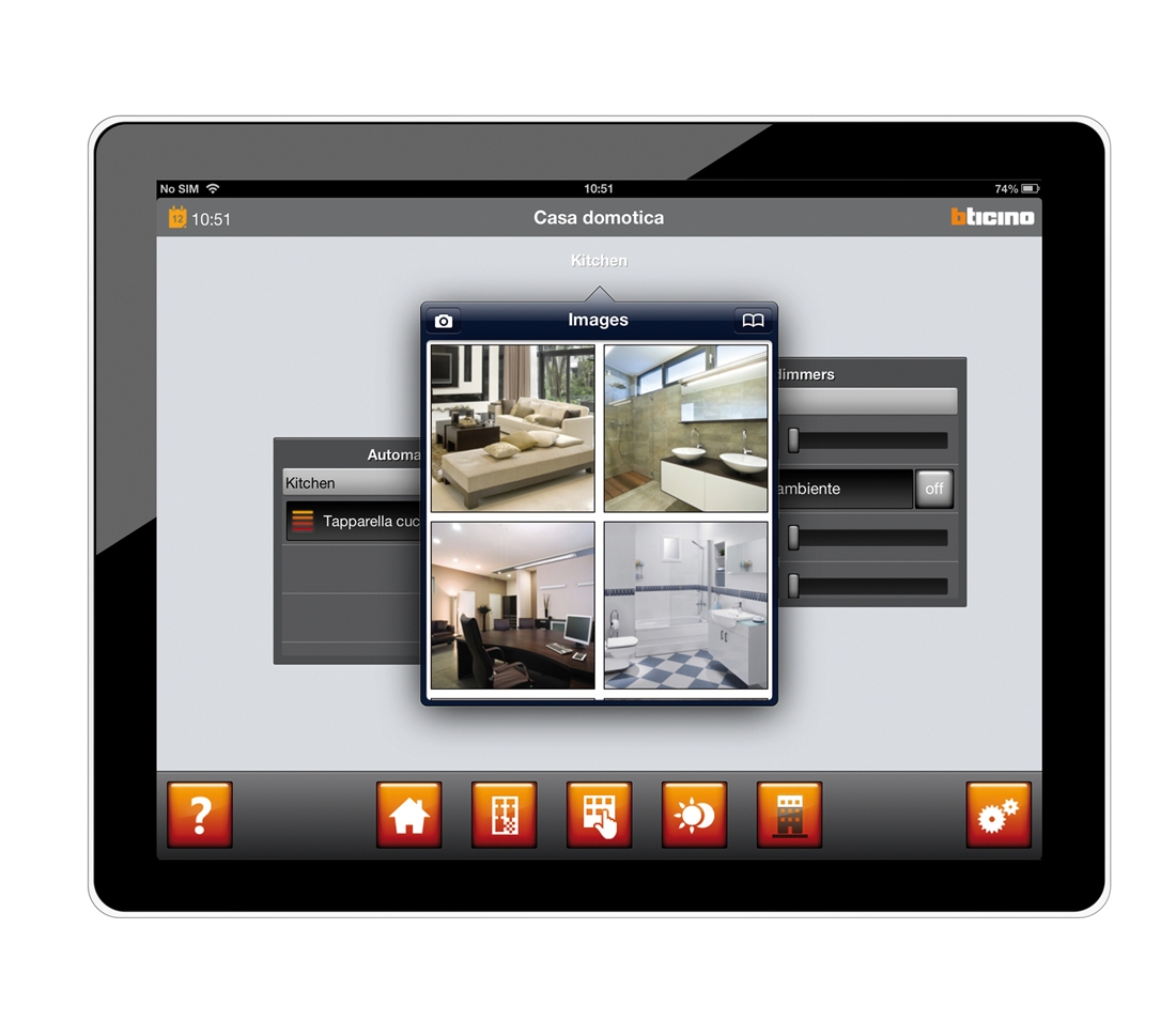Diventa così più facile tenere sotto controllo le principali funzioni: illuminazione, automazione, scenari, termoregolazione a zone, diffusione sonora monocanale e multicanale. Nella versione completa l’applicazione è in grado di gestire più impianti contemporaneamente (come l’abitazione, il negozio e la casa al mare), oltre a visualizzare diverse immagini per gli sfondi personalizzati di ogni locale (la cucina, l’ingresso, il garage…), prelevandole da una libreria standard precaricata oppure dalla libreria personale dell’utilizzatore. Molto utile è la possibilità di usufruire delle funzionalità dell’app da remoto, anche utilizzando il portale My Home Web di BTicino. In questo caso il servizio garantisce la qualità delle trasmissioni da e per l’abitazione con la sicurezza e la riservatezza garantite dall’applicazione di protocolli e procedure di tipo bancario.