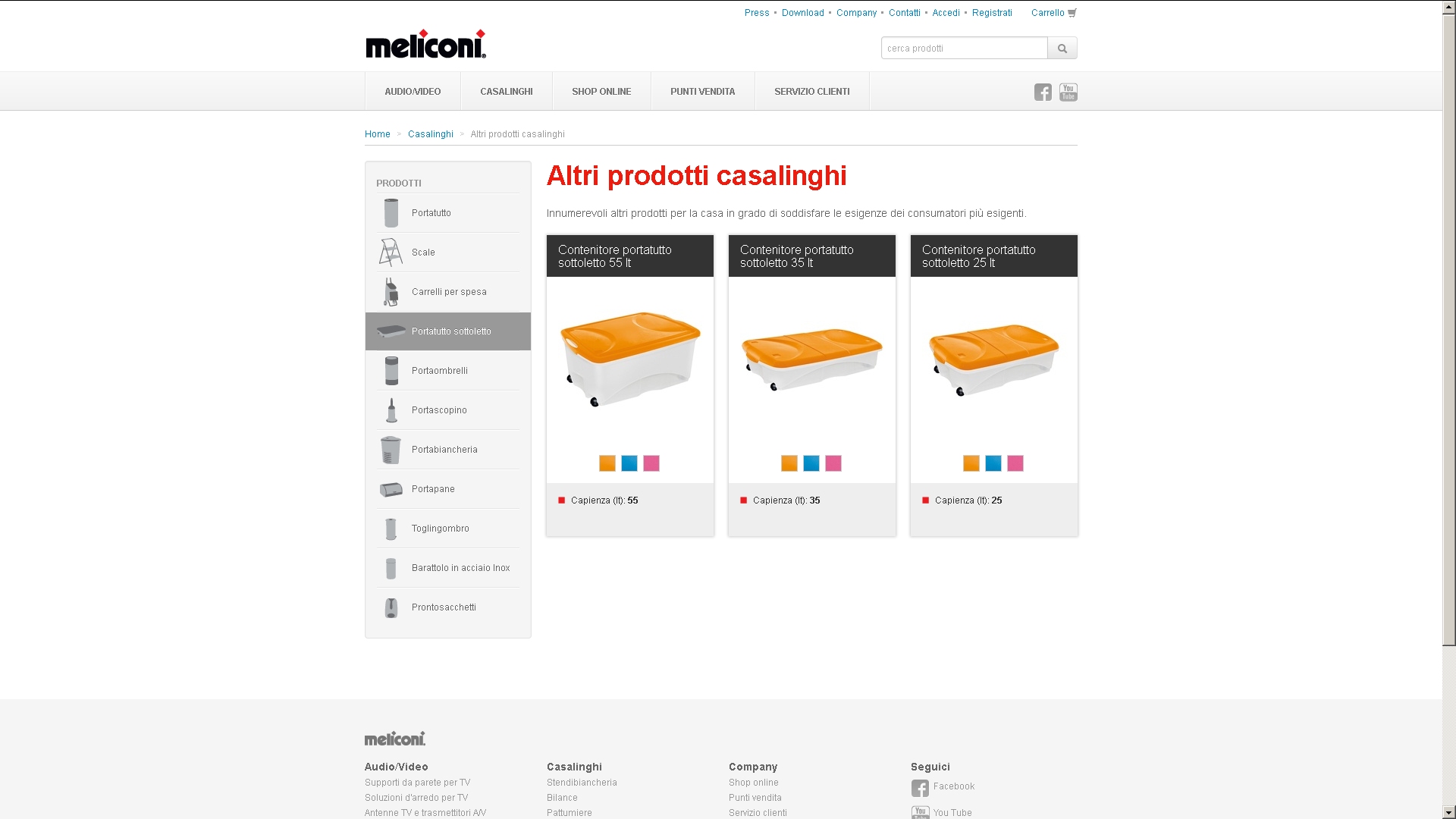 Cinque le sezioni a cui accedere: Audio/Video, Casalinghi, Shop Online, Punti Vendita e Servizio Clienti e cliccando sui primi due si accede, tramite un menu a tendina, alle 9 tipologie di prodotto disponibili, contenenti la descrizione di ogni singolo articolo. Disponibile in italiano, inglese e spagnolo, il sito permette infine, cliccando sulle icone di Facebook e YouTube, di essere aggiornati per esempio sul lancio di novità.