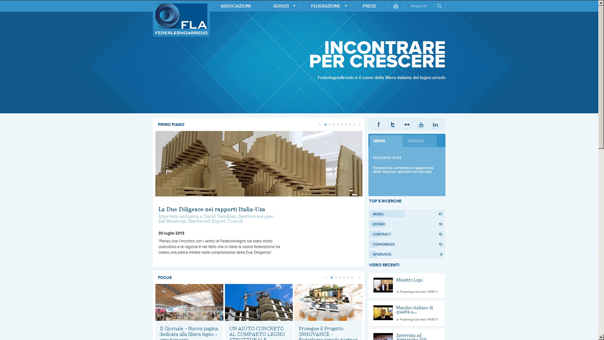 Con una nuova veste grafica, il sito www.federlegnoarredo.it offre oltre 5.000 pagine e 25.000 file consultabili. Un sito molto “frequentato” con oltre 30 milioni di accessi all’anno e 6 milioni di pagine visitate, che necessitava un restyling sia per agevolare la ricerca sia per fornire nel modo più ampio ed esaustivo informazioni e servizi alle imprese. Una homepage molto interattiva con accesso diretto ai social, un’agenda pubblica per evidenziare incontri, meeting e appuntamenti in Italia e nel mondo sono alcuni esempi delle pagine presenti. In questo mese sarà inaugurata la sezione in lingua inglese e a novembre sarà disponibile la “vetrina soci”, una comunità multimediale del made in Italy, per creare nuove opportunità di business e favorire il networking fra le aziende associate.