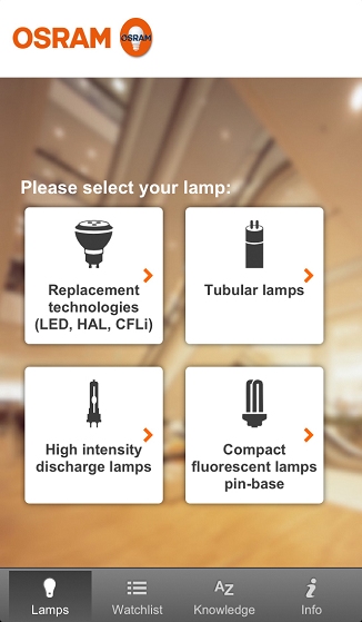 Un aiuto per orientarsi nell’offerta di prodotti: questo lo scopo di Osram che ha realizzato l’App Osram Lamp Finder Professional, per permettere di selezionare le lampade giuste in modo semplice e rapido. Utilizzabile quando si è in sede, in riunione, in viaggio o in ufficio, per scegliere i prodotti giusti velocemente e confrontare i dati tecnici delle opzioni disponibili, con questo strumento è possibile selezionare le sorgenti luminose più adatte al progetto, sia da solo sia insieme ai clienti. L'app consente di confrontare lampade LED, alogene e fluorescenti compatte, ma anche selezionare lampade fluorescenti e a scarica ad alta pressione. Tra le funzioni utili: lista dei desideri, funzioni mail, calcolatore del risparmio energetico & tecnologie alternative. È possibile salvare le sorgenti luminose selezionate nella lista dei desideri e inviarle a qualsiasi indirizzo di posta elettronica. L'app permette di trovare alternative alle lampade a incandescenza tradizionali e di calcolare la potenza delle lampade alogene con riflettore nella sezione "Tecnologie alternative". Per soddisfare la crescente domanda di soluzioni efficienti, con il calcolatore del risparmio energetico si può quantificare l'energia risparmiata dalle lampade selezionate rispetto alle lampade standard corrispondenti. L’applicazione per smartphone e tablet può essere scaricata gratuitamente dall'App Store e daGoogle PlayTM.