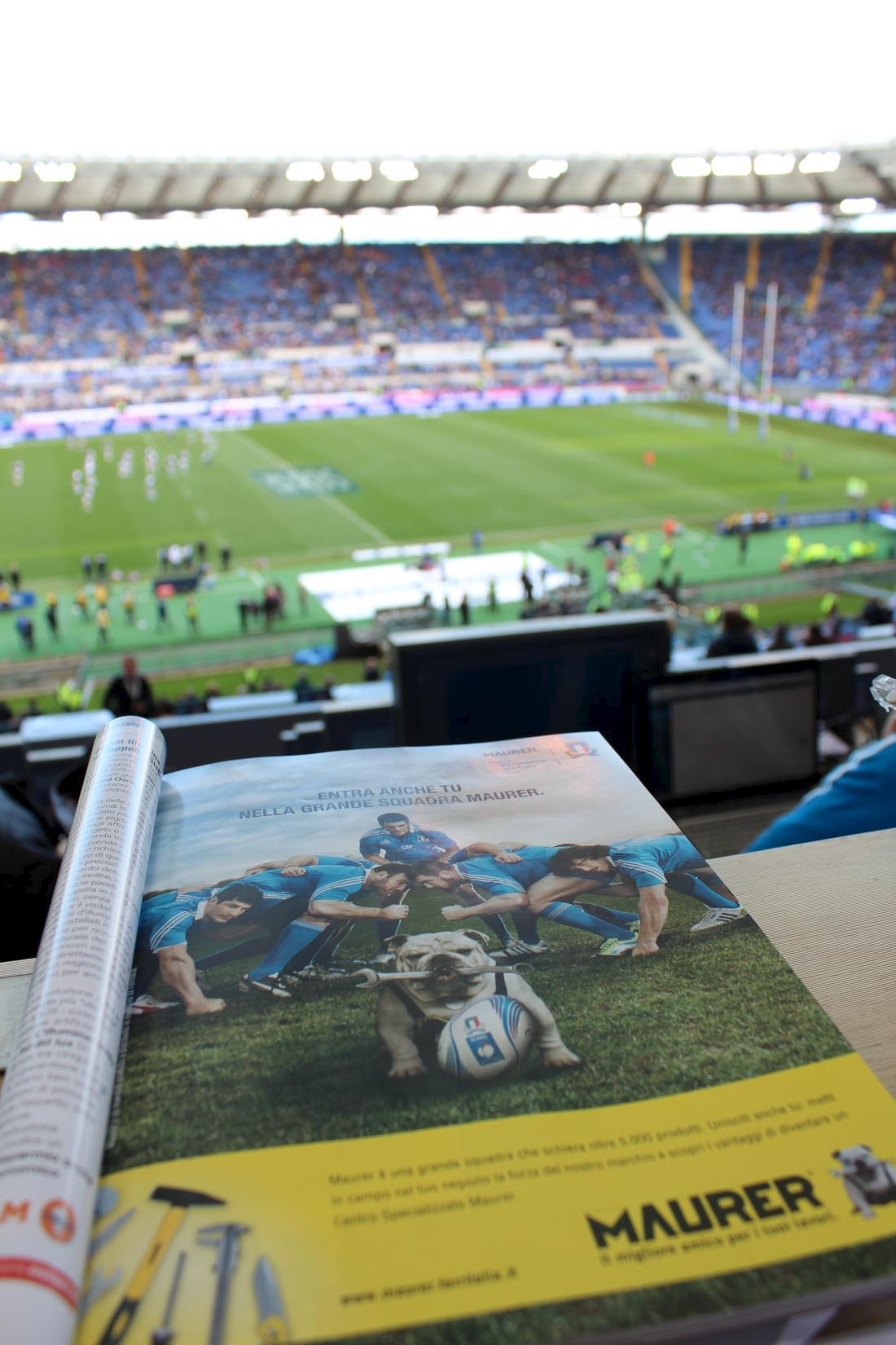 Maurer ha accompagnato i più importanti momenti del match da bordo campo: Il bulldog, simbolo da anni del marchio Maurer, era ben visibile sui cartelloni pubblicitari quasi a “sorvegliare” le fasi dell'incontro, mentre 70.000 tifosi urlanti seguivano a loro volta lo svolgersi del gioco. Anche lo speaker dello stadio Olimpico, che “controllava” l'entusiasmo del pubblico (invitando ad esempio al silenzio durante i calci piazzati) o incitava a sostenere gli azzurri nei momenti più delicati, ha più volte citato Maurer tra gli sponsor della Nazionale, definendolo “il miglior amico per i tuoi lavori”.