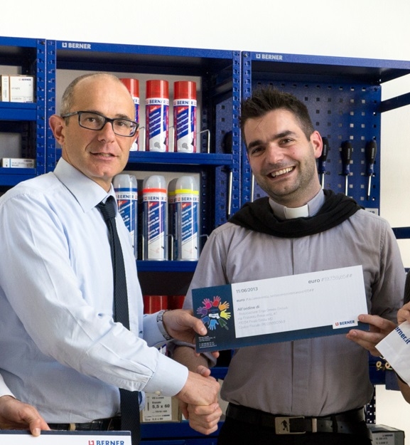 Aiutare l’Emilia a risollevarsi dopo il terremoto è stata la spinta per l’iniziativa “Berner for Emilia”. La T-shirt creata riprendeva uno degli attrezzi fondamentali nell’opera basilare di ricostruzione del territorio, circondato da una serie di mani colorate come l’arcobaleno. Dal 2012 a settembre 2013 sono state vendute oltre 4.000 T-shirt. Il risultato di “Berner for Emilia” si è concretizzato in una donazione di 20.000 euro alla Onlus Erga Omnes di Finale Emilia che ha utilizzato questo importo per completare la Scuola d’Infanzia e l’Asilo Nido “Sacro Cuore”: una struttura di oltre 1.600 mq interamente in legno, altamente ecologica, antisismica e a elevato risparmio energetico. Massimo Rossi, amministratore delegato di Berner Italia dichiara: “Credo che ognuno di noi debba sentirsi fiero e orgoglioso di aver contribuito a ricostruire una piccola parte del territorio e ad aiutare concretamente persone in difficoltà”.