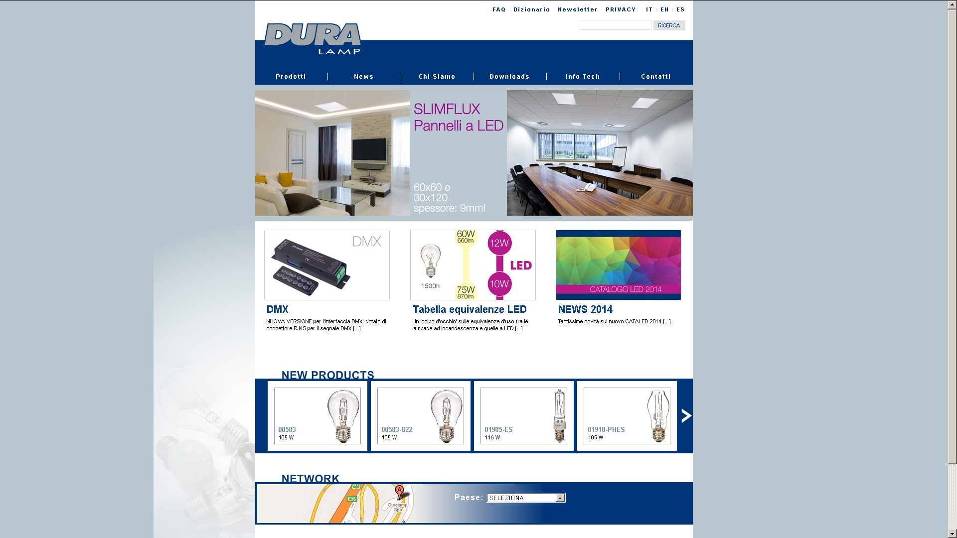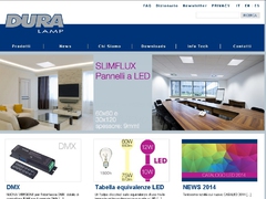 In italiano, inglese e spagnolo www.duralamp.it presenta la storia aziendale, la Green Mission, i prodotti e le novità, ma in News sono presenti anche, per esempio, altre informazioni, infatti, è possibile visionare una tabella di equivalenze Led