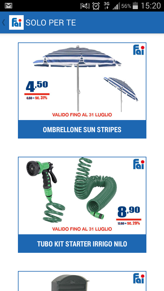 Si chiama Fai Store, è disponibile sia per Android che per Apple, e si ispira ai siti di vendita-evento che hanno sempre più successo (vente privée è forse il più famoso). Scaricando l'applicazione, o collegandosi al sito internet "tradizionale", si possono vedere le offerte in corso e acquistare i prodotti.