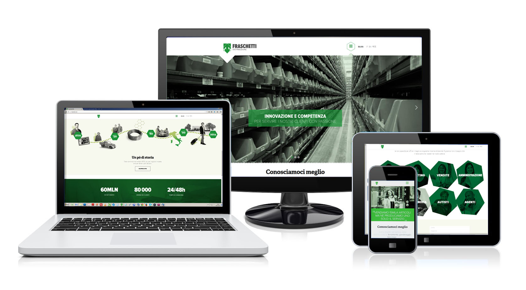 Dal punto di vista visivo, l’attento studio fatto sull’impiego del colore verde del logo aziendale e su alcuni elementi grafici che richiamano il mondo della ferramenta permette di evidenziare ulteriormente l’identità di Fraschetti.