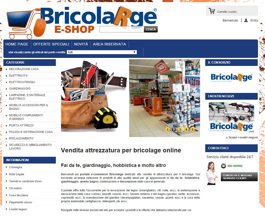 BricoLarge, storico consorzio di negozi specializzati (ad oggi sono 16 sul territorio nazionale) nel bricolage e nel giardinaggio, ha deciso di essere tra le prime insegne del settore a completare la propria modalità di offerta ai consumatori affiancando ai tradizionali punti vendita fisici un portale di e-commerce davvero comodo e ben progettato.