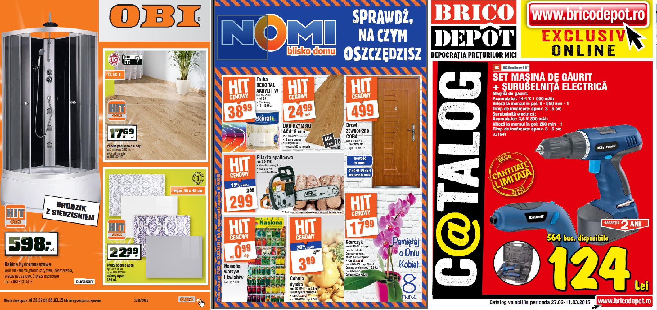 Di seguito trovate tutti i pdf dei volantini di Baumax, Home Depot, Dedeman, Hornbach, Leroy Merlin e Praktiker (per la Romania), Brico Depot, Nomi, Obi e Leroy Merlin (per la Polonia).