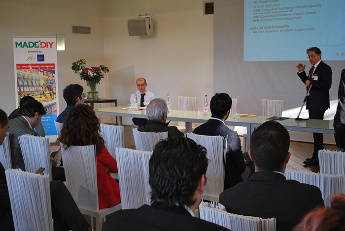 Michele Zucca, Presidente di MADE4DIY, ha aperto l'evento parlando del consorzio e del contesto internazionale in cui MADE4DIY è inserito; gli amministratori di Sinergia, Dott. Flavio Tonetto e Dott. Massimiliano Londei hanno presentato i servizi offerti ed in particolare il servizio PIRM Performance Improvement Risk Manager che ha l'obbiettivo di supportare imprenditori, dirigenti e responsabili nel miglioramento della competitività, mettendo le organizzazioni nelle condizioni di erogare un maggiore valore aggiunto ai clienti, contenendo i costi.