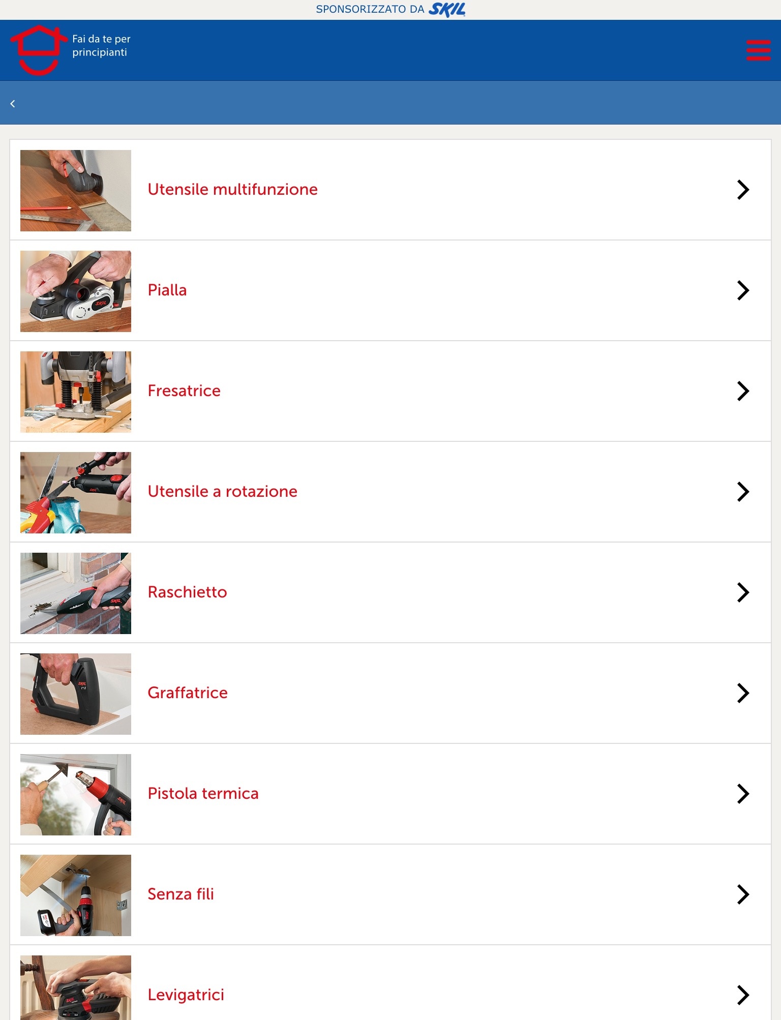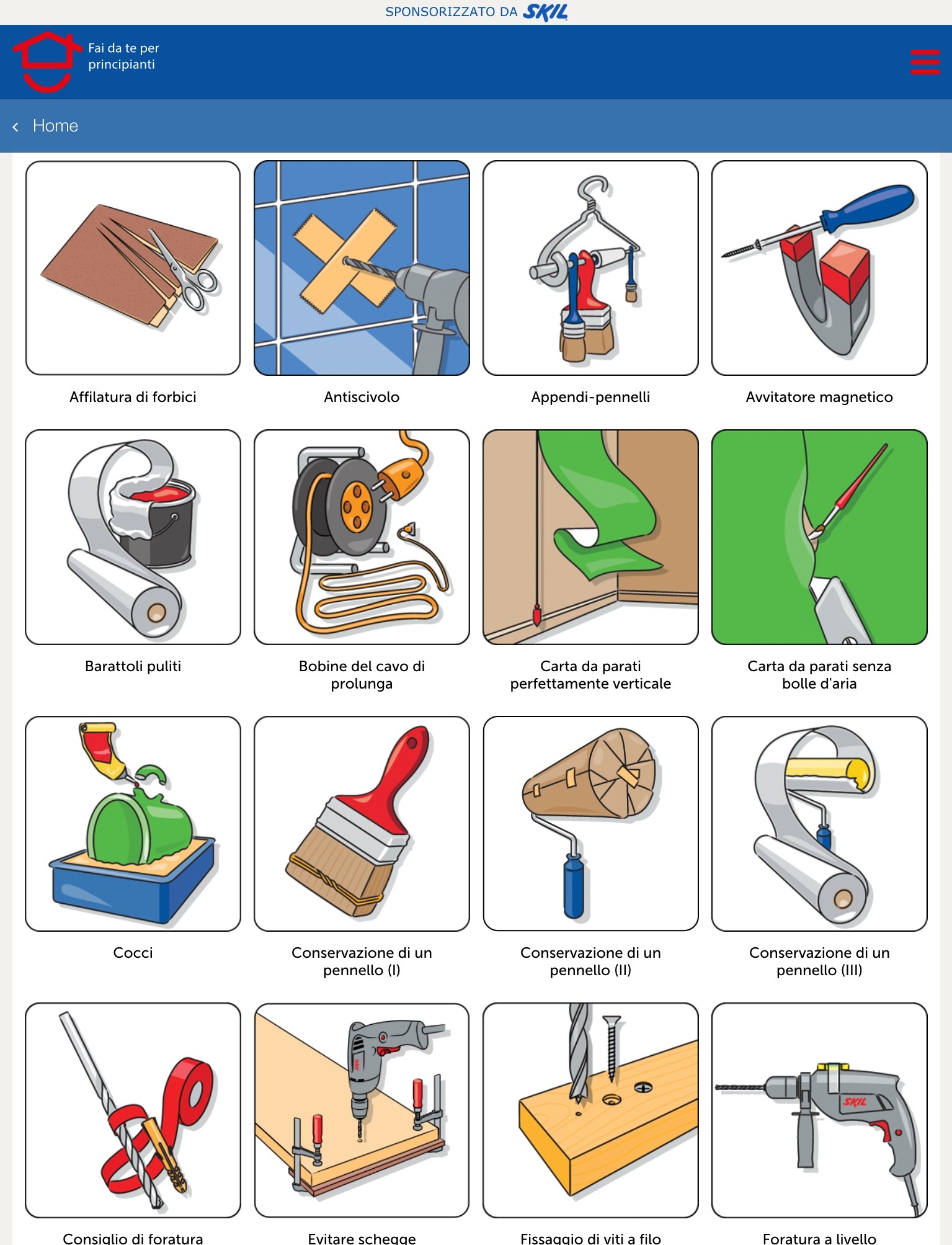 Skil, marchio del Gruppo Bosch, sponsorizza l'App "Fai da te per principianti", disponibile in 17 lingue e dedicata a tutti gli amanti dei lavori fai-da-te e, in particolare, a coloro che hanno meno esperienza nel campo. Quest'anno l'applicazione, disponibile per dispositivi Android e iOS, si rinnova sia a livello di contenuti sia a livello grafico.