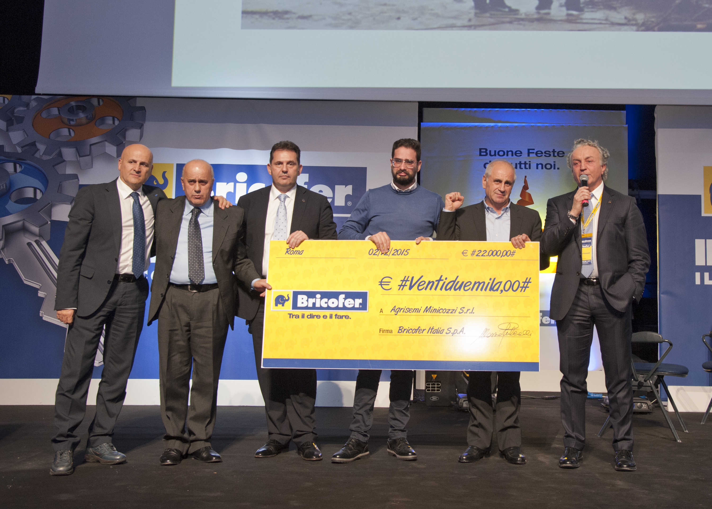 Il 2 dicembre, in occasione della tradizionale cena di Natale, presso la suggestiva location di Spazio900 a Roma, Bricofer ha consegnato alla famiglia Minicozzi un assegno di 22.000 euro, cifra raccolta nei punti vendita che si va ad aggiungere al contributo dell’azienda di 5.000 euro donato ad ottobre: i fondi raccolti verranno utilizzati per la ricostruzione della Agrisemi Minicozzi Srl distrutta dall’alluvione di Benevento del 15 ottobre 2015.