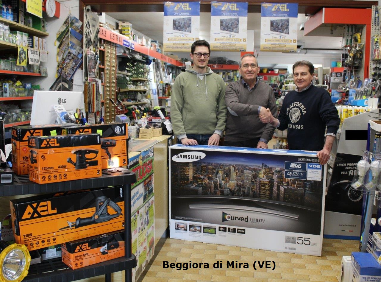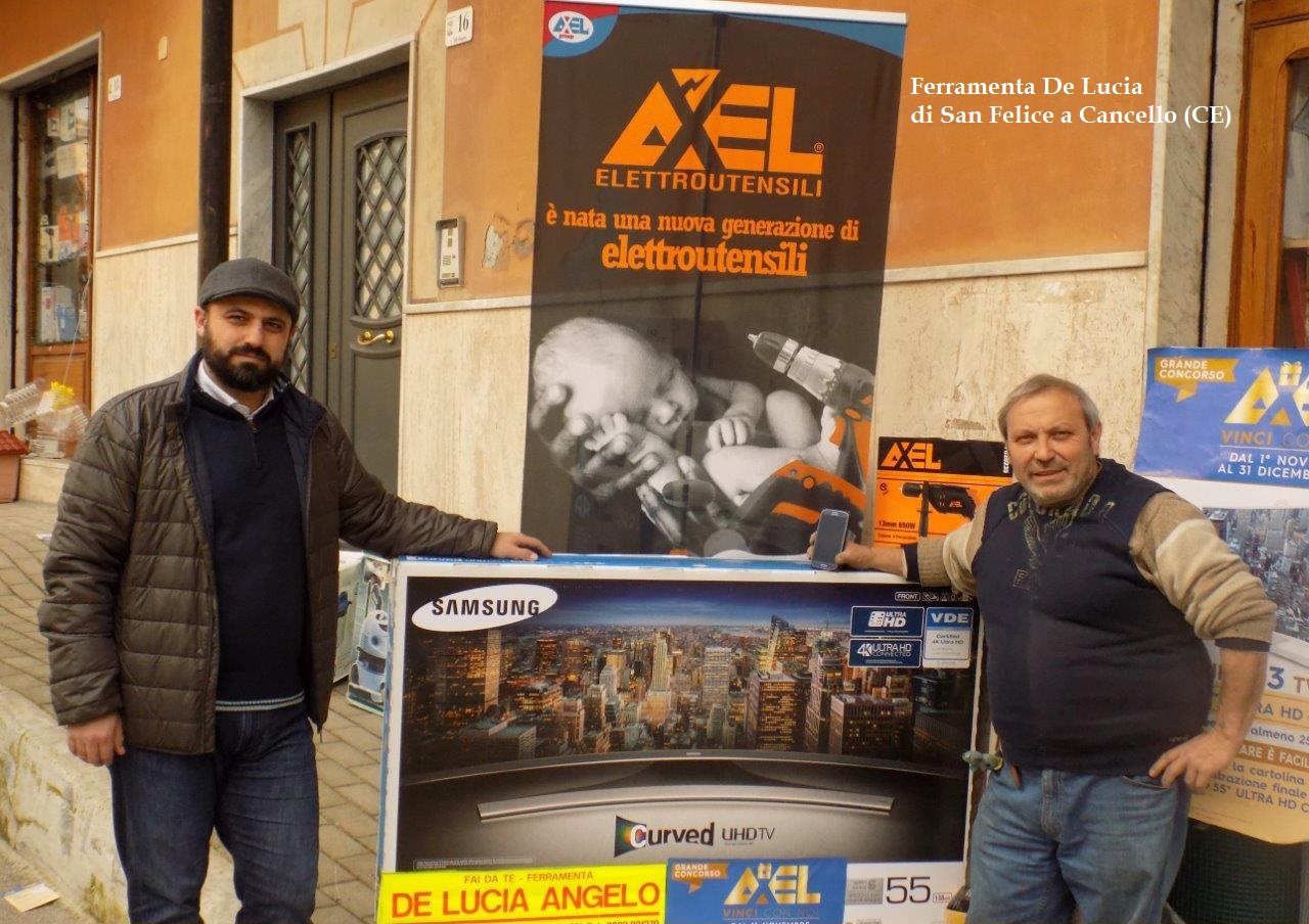 Si è chiuso con grande successo di partecipazione il concorso AXEL VINCI CON NOI, cui hanno aderito numerosi punti vendita. I premi sono andati a tre fortunati vincitori dei punti vendita Beggiora di Mira (VE), Ferramenta Turrini di Valeggio sul Mincio (VR) e Ferramenta De Lucia di San Felice a Cancello (CE). Rivolgiamo un grazie speciale a tutti i clienti che hanno aderito al concorso e ci congratuliamo con i fortunati vincitori, i signori Luciano Favaron, Pietro De Vecchis e Raffaele Letterese, ai quali è stato consegnato un meraviglioso TV Smart SAMSUNG Led 55” Ultra HD CURVE.