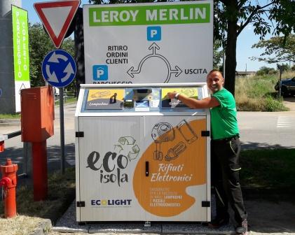 Incentivare la raccolta dei rifiuti elettronici di piccole dimensioni andando incontro ai cittadini. Questo l’obiettivo delle EcoIsole intelligenti che il consorzio Ecolight ha realizzato e che sta posizionando in corrispondenza di importanti punti vendita della distribuzione. Da oggi, martedì 28 giugno, i Leroy Merlin di Nova Milanese (MB) e di Solbiate Arno (VA) sono stati dotati degli innovativi cassonetti dove poter conferire piccoli utensili ed elettrodomestici, trapani, avvitatori, telecomandi, cellulari e lampadine a risparmio energetico non più funzionanti. Salgono così a 15 i Leroy Merlin in Italia che permettono di dare un importante contributo al recupero dei rifiuti da apparecchiature elettriche ed elettroniche - RAEE.