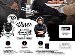 Ecco spiegato il senso del concorso, con i suoi premi importanti e utili che lo rendono un’occasione di incontro con un nuovo stile di vita più che una chance di vincita in sé. Il culmine nel grande premio finale, un barbecue da intenditori ideale per l’affumicatura, ma anche per la cottura di dolci, torte e pane: il Summit Charcoal Grill Black. Ha coperchio e braciere a doppia parete per un isolamento ottimale, una valvola di aerazione sul coperchio per il controllo della temperatura, accensione rapida, griglia di cottura inox da 60 cm incernierata, sistema di rimozione della cenere facilitato, termometro integrato sul coperchio, supporto per piatto diffusore, ripiano laterale in acciaio inox integrato e tanto e tanto altro da scoprire, magari proprio grazie al corso di cucina al barbecue con il noto chef e conduttore televisivo Alessandro Borghese che metterà a disposizione del vincitore la sua notevole esperienza e il suo amore per una cucina ricercata e tradizionale al tempo stesso, dall’inconfondibile stile inventivo e generoso.