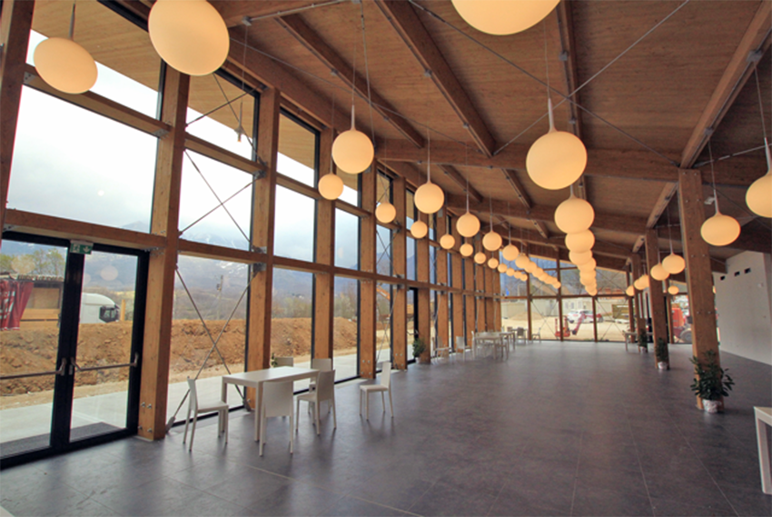 L’edificio della mensa, interamente in legno, è stato realizzato in tempi rapidissimi per contribuire a superare la drammatica emergenza e rappresenta il primo passo verso la costruzione del nuovo villaggio food, ormai prossimo all'apertura, che diventerà un polo della ristorazione dando lavoro a oltre 130 cittadini e rilanciando l’economia del territorio duramente colpito dal terremoto dello scorso anno.